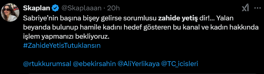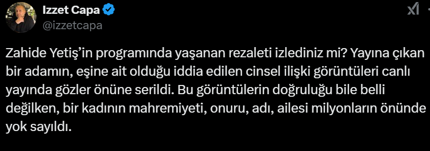 Görüntülerin doğruluğu kanıtlanmamışken bir kadının zan altında bırakılması ve böyle görüntülerin canlı yayında izlenmesi sosyal medyadan yoğun tepki aldı. Zahide Yetiş ‘X’ platformunda tt oldu ve tepkilerin ardı ardı kesilmedi.