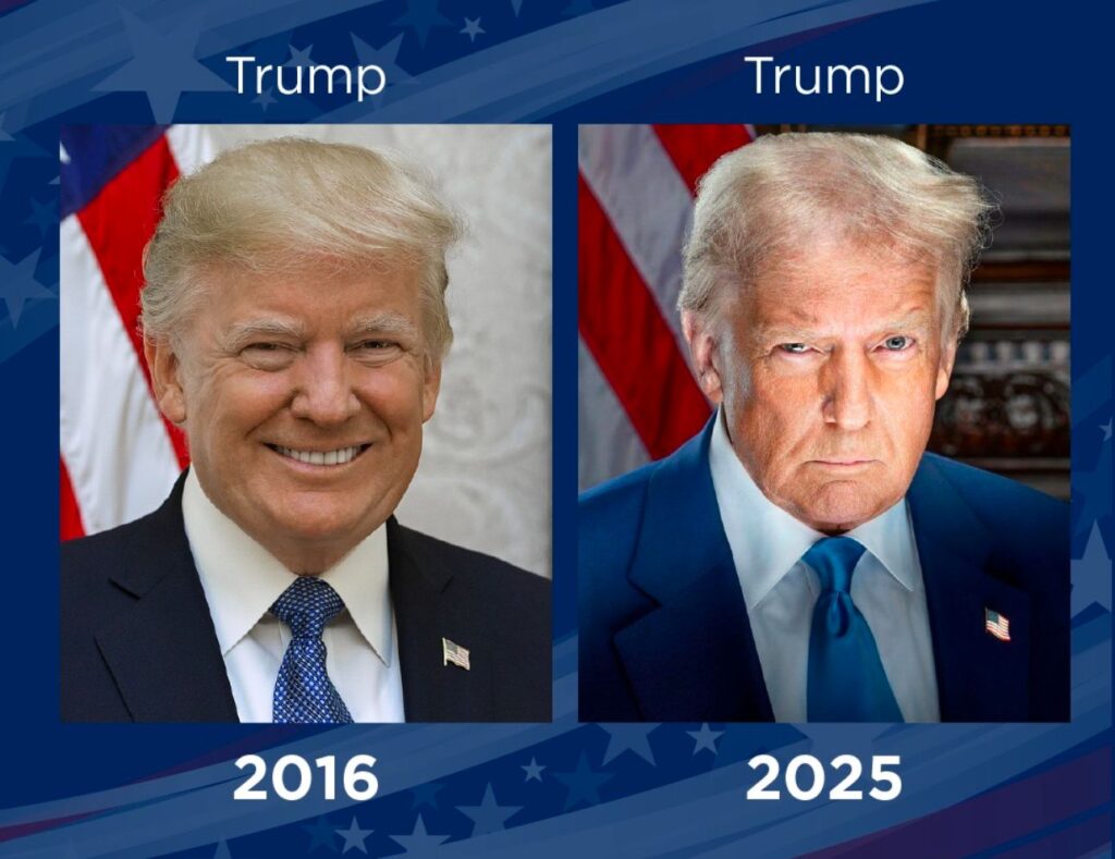 2016 yılında başkanlık koltuğuna oturduğunda objektiflere güler yüzlü bir poz vermişti. İşte o 2 poz arasındaki benzerlik…
