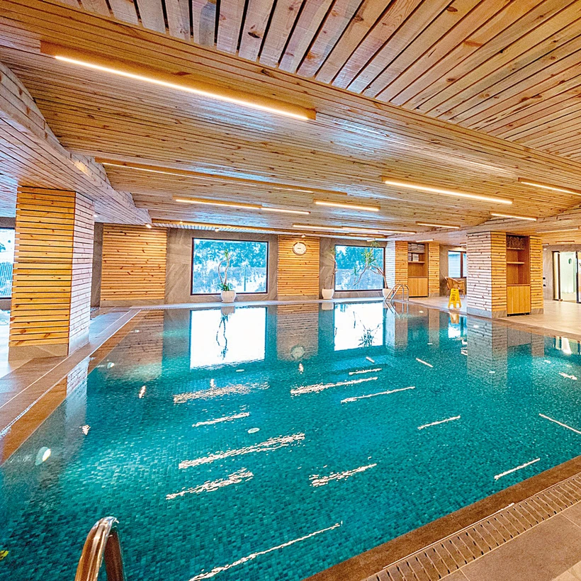 12 Ocak’ta havuzu paylaştılar. Her tarafı, dışı gibi ahşap kaplamaydı.