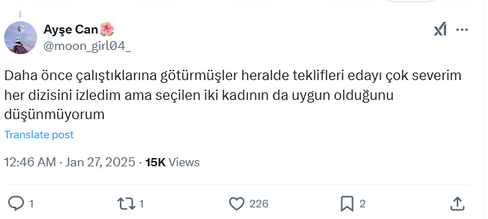 Ece, efsane ressam Fahrelnissa Zeyd’i canlandıracak. Ancak, Eda Ece’nin siyah saçlı bir karakteri canlandıracak ve bu rol için saçlarını boyatacak olması sosyal medyada büyük tepkiyle karşılaştı. “Siyah saçlı oyuncu yerine sarı saçlı oyuncunun saçını boyatmak… Tekelleşme bu olsa gerek,” diyen sosyal medya kullanıcıları, alternatif oyuncu seçimlerinin yapılması gerektiğini savundu.