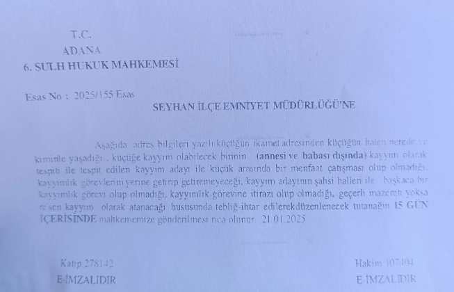 Adana’da berberlik yapan Murat Çakmak ve eşi, yeni doğan bebeklerinden topuk kanı alınmasına karşı çıktı. Sağlık ekiplerinin durumu yetkililere bildirmesi üzerine aile ifadeye çağrıldı. Mahkeme sürecinin ardından, “Benim çocuğum belediye mi ki kayyum atandı?” diyerek karara tepki gösteren baba Murat Çakmak’ın 2.5 aylık bebeğine kayyum atandığı öğrenildi.