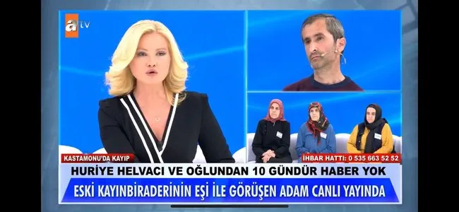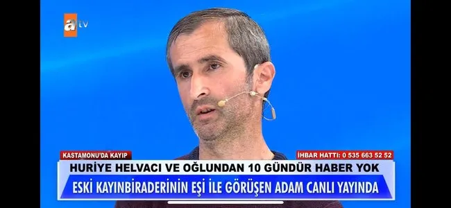 Bunun üzerine iddiaların odağındaki eski enişte, canlı yayına katıldı. Huriye Helvacı’nın görümcesinin eski eşi Mustafa Bey, kaybolmadan birkaç gün önce Huriye Helvacı ile görüştüklerini belirterek, “Arada nasılsın diye arardı, kaybolmasıyla hiçbir ilgim yok” ifadelerini kullandı.