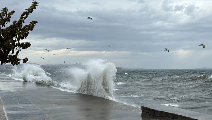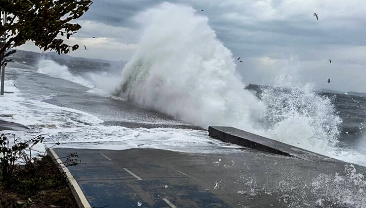Lodosun etkisiyle dalgalar, Ambarlı Sahili’nde mendireği aşarak balıkçı barınaklarına kadar ulaştı.